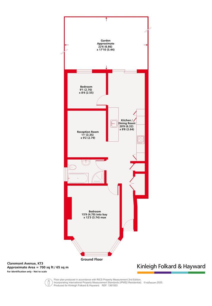 An outstanding 700 Sq Ft two bedroom ground floor period maisonette for sale in Motspur Park. Presented in stunning condition with a stylish modern open-plan kitchen and living space with private landscaped garden and own entrance into flat.