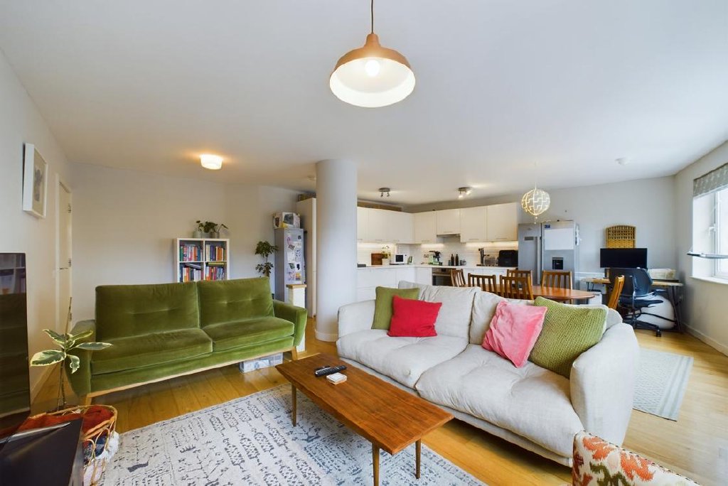 A larger than average (963sq ft) first floor two bedroom apartment on the first floor of a modern gated development with a private balcony and beautiful large open plan living space.