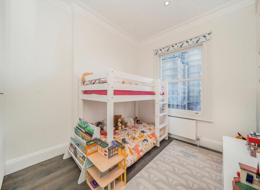 A stunning three-bedroom duplex arranged over the second and third floors of a grand period conversion. The property offers a spacious reception, contemporary interiors, and a large principal suite. A generous top-floor bedroom with extensive storage completes the home.
