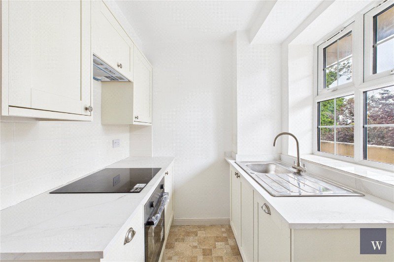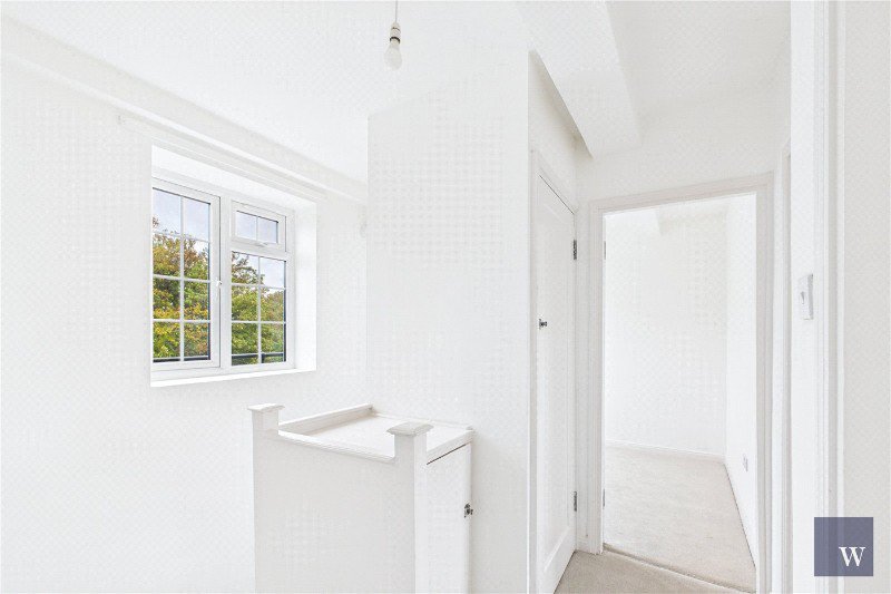 Upstairs, three comfortable bedrooms are arranged around a wide landing, two doubles with leafy views and a third ideal as a nursery or study. A fresh family bathroom completes the layout. Residents enjoy access to extensive communal lawns at the rear, while a residents’ car park sits at the front of the development. The building is well maintained by proactive managing agents with an active residents’ association.