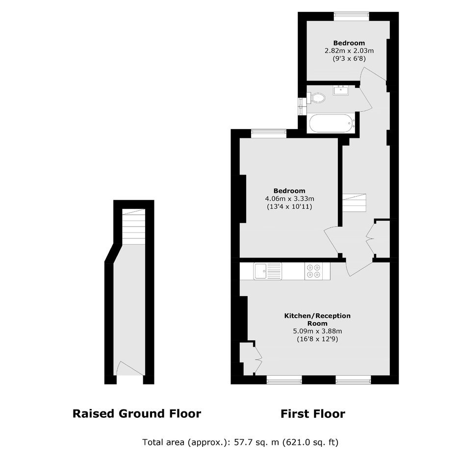 A first floor maisonette set in a charming Victorian conversion. The property comes complete with two bedrooms and an open plan kitchen/reception with large sash windows.