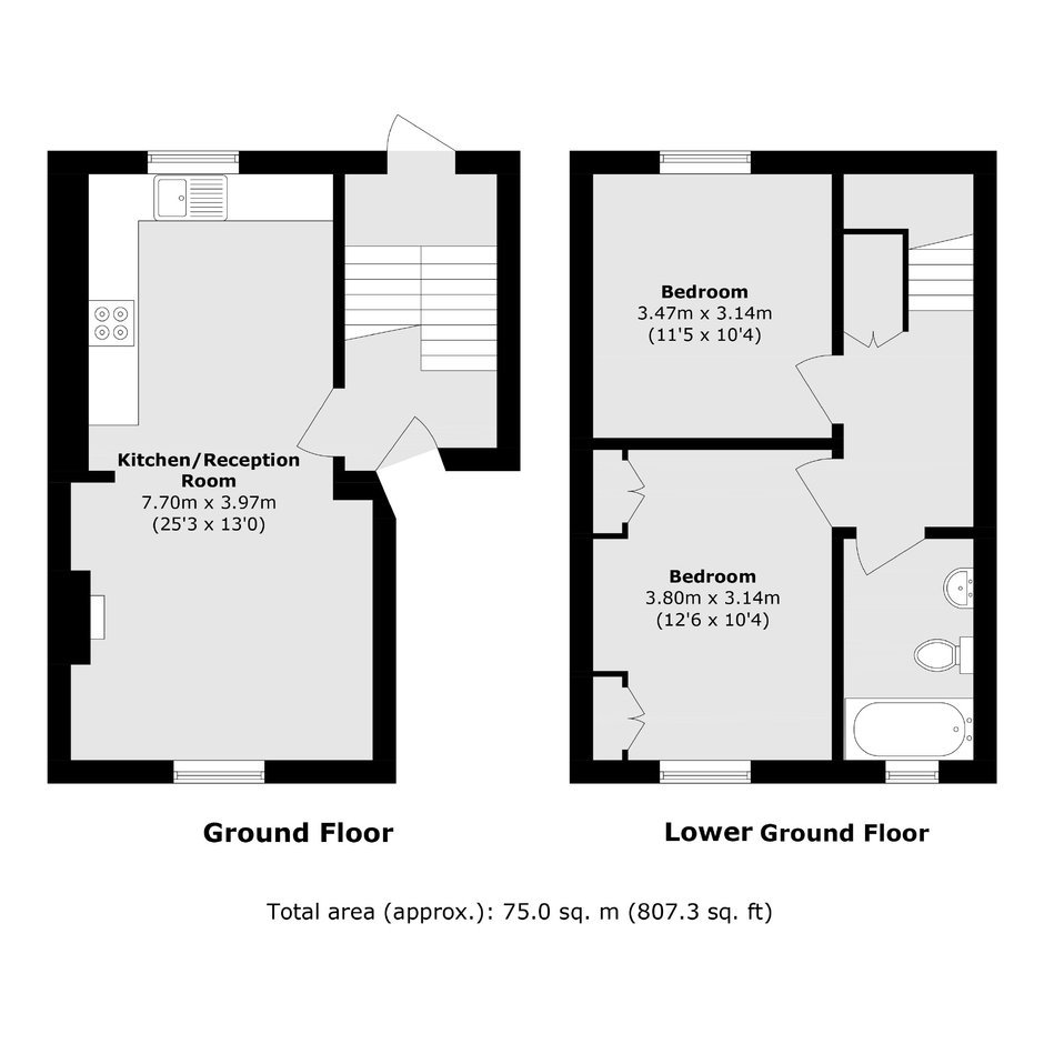 This two double bedroom split level apartment has an large reception room and a modern kitchen. The apartment also has access to a shared garden with an outhouse.