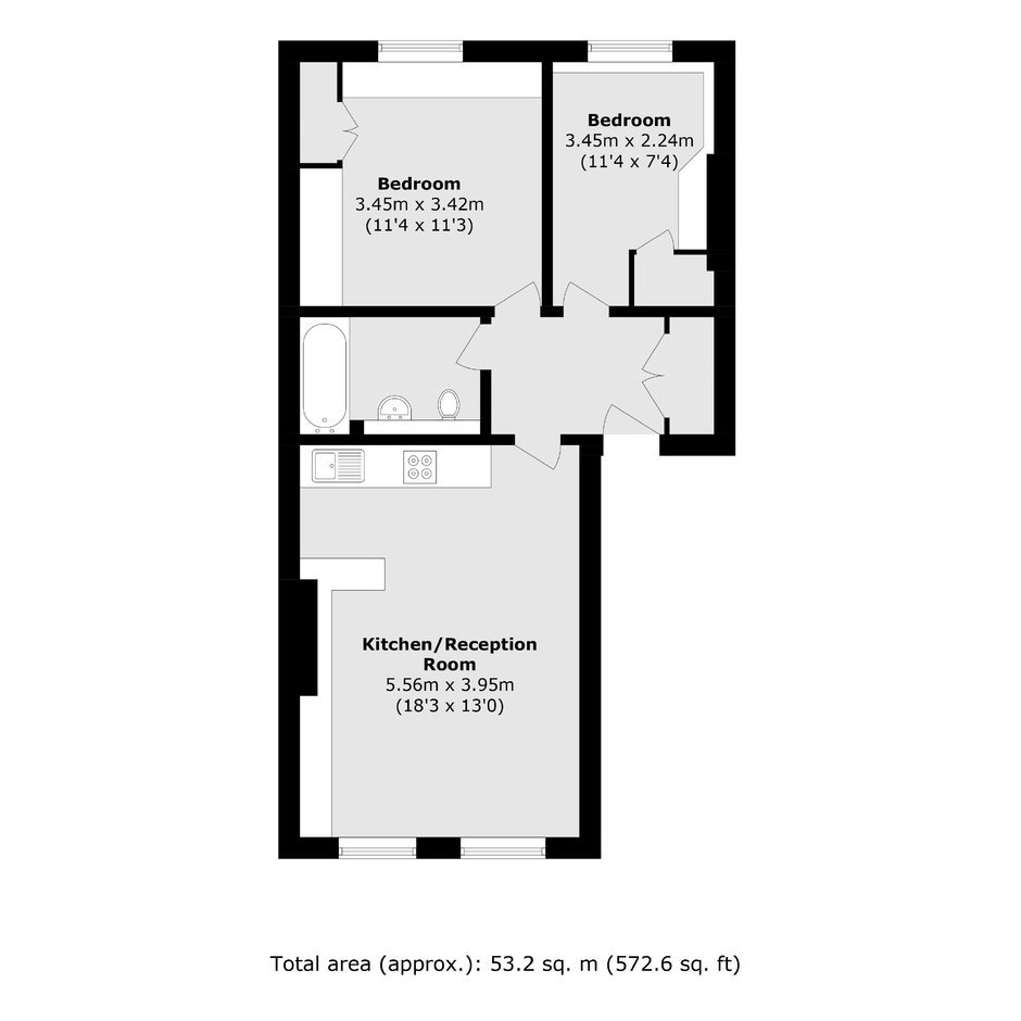 This fantastic two bedroom apartment has an open plan kitchen/reception room with high ceilings and large windows throughout, letting in lots of natural light.