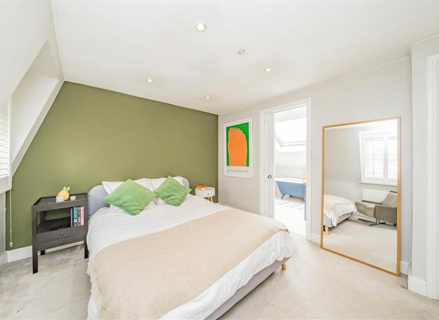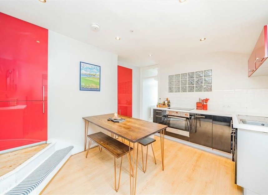 A three bedroom split level maisonette arranged over the top two floors of this Victorian building, The first floor compromises of of a large living room, two bedrooms, a bathroom and an open kitchen. The top floor has the master bedroom with a walk in wardrobe and a modern En suite bathroom, including a bath. The property has a private secluded roof terrace.