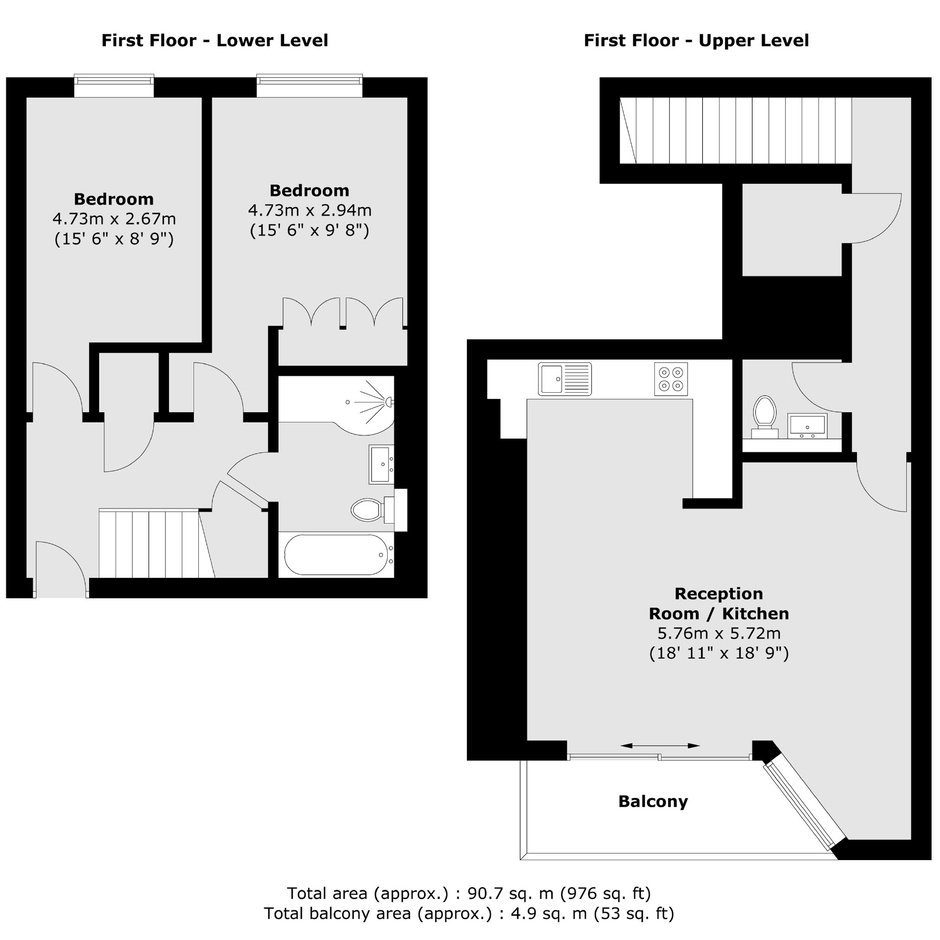 A beautifully presented two double bedroom, two bathroom, split level modern flat in a sought after location with a private balcony and communal garden.