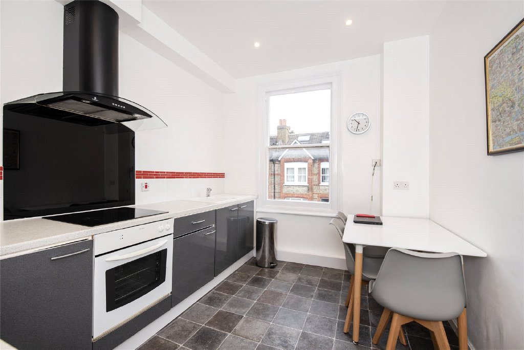 Spacious, light and airy living room with high ceilings and a feature staircase. Separate good sized kitchen with space for a four-seater table. An ideal first time purchase or a shrewd investment flat. This is a prime location located within easy reach of the shops and cafes of Askew Village.