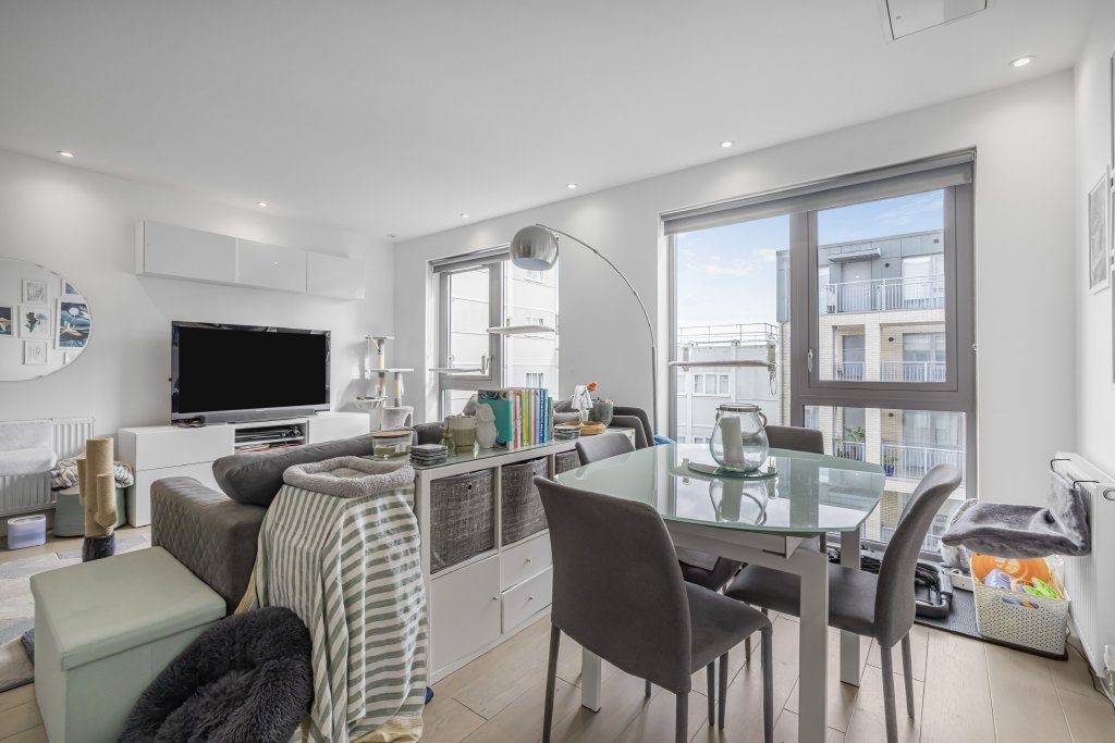 A beautifully presented two-double bedroom, two-bathroom apartment with a private balcony, ideally located within a modern riverside development close to Battersea and the River Thames. Offering approximately 838 sq. ft. (77.9 sq. m.) of stylish and well-designed living space, this apartment combines contemporary interiors with a practical layout and excellent natural light throughout. The accommodation includes a generous open-plan kitchen, dining, and living area, featuring high-quality finishes, integrated appliances, and large windows creating a bright and airy feel. An allocated underground parking space is also available by separate negotiation. The main bedroom is spacious and benefits from a sleek en-suite shower room, built-in storage, and direct access to the private balcony — perfect for morning coffee or evening relaxation. The second double bedroom is also well-sized and served by a modern family bathroom, offering flexibility for guests, family, or home working. Constance Court is part of a popular and well-maintained development offering secure entry, lift access, and beautifully kept communal areas. The location is superb — just moments from the River Thames, Battersea Square, and Battersea Park, with a great selection of cafés, restaurants, and amenities nearby. Excellent transport links include Clapham Junction, Wandsworth Town, Battersea Power Station (Northern Line), as well as a bus stop conveniently located practically on the doorstep, ensuring easy access into Central London and beyond. This property is ideal for first-time buyers, professionals, or investors seeking a stylish home in a vibrant and well-connected riverside location.