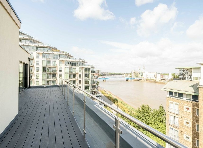 A two double bedroom, two bathroom penthouse apartment with a large private roof terrace with river views. This well laid out property has 831 square feet of living space as well as the terrace. There is underfloor heating throughout too. There is a modern kitchen with German appliances.