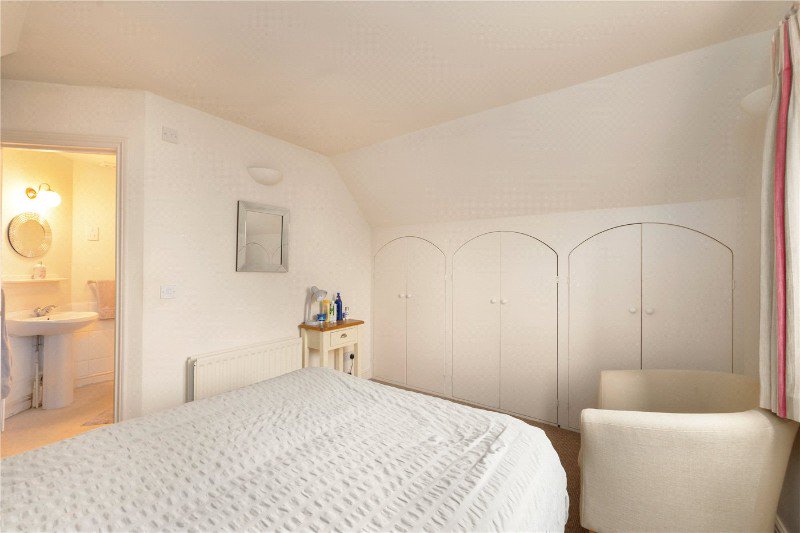 The bedroom benefits from elevated views across the surrounding area and includes its own en suite shower room.