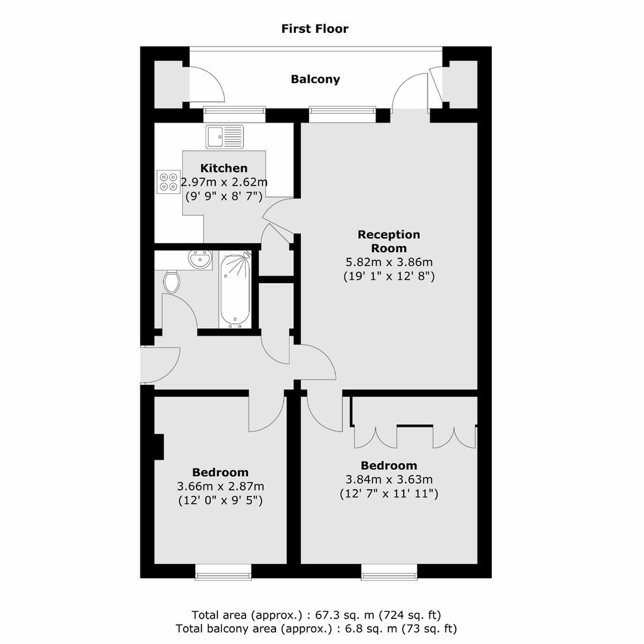A first floor flat spanning over 700 sq ft of lateral living space, The property is filled with natural light, with two good size bedrooms, separate kitchen and reception room along with a private balcony overlooking the communal gardens. Additionally there is off street parking and will be sold chain free. Abbeyfields Close Would be perfect for a first time buyer and someone looking withing the school catchment areas.
