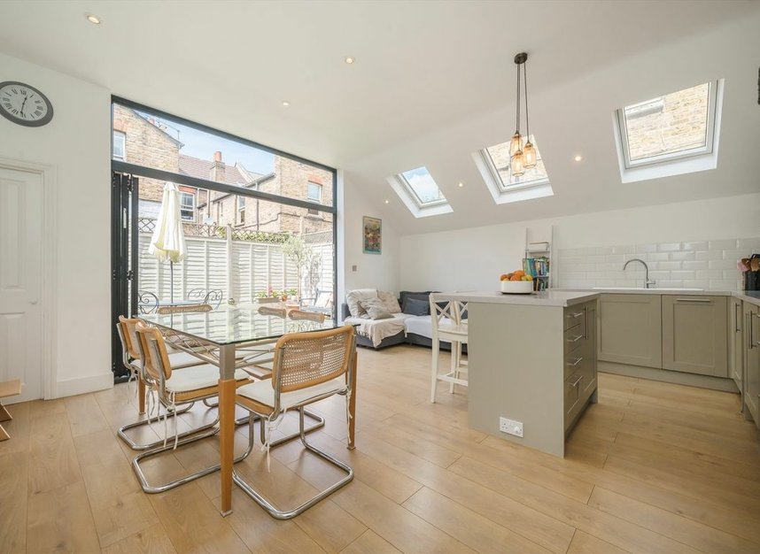 This beautifully finished three-bedroom ground floor maisonette offers a bright, spacious interior with modern design throughout. The open-plan kitchen and dining area has been thoughtfully laid out to maximise space and light, with large windows and a skylight creating an airy, welcoming feel. Bi-folding doors open directly onto a private garden, ideal for indoor-outdoor living and entertaining.