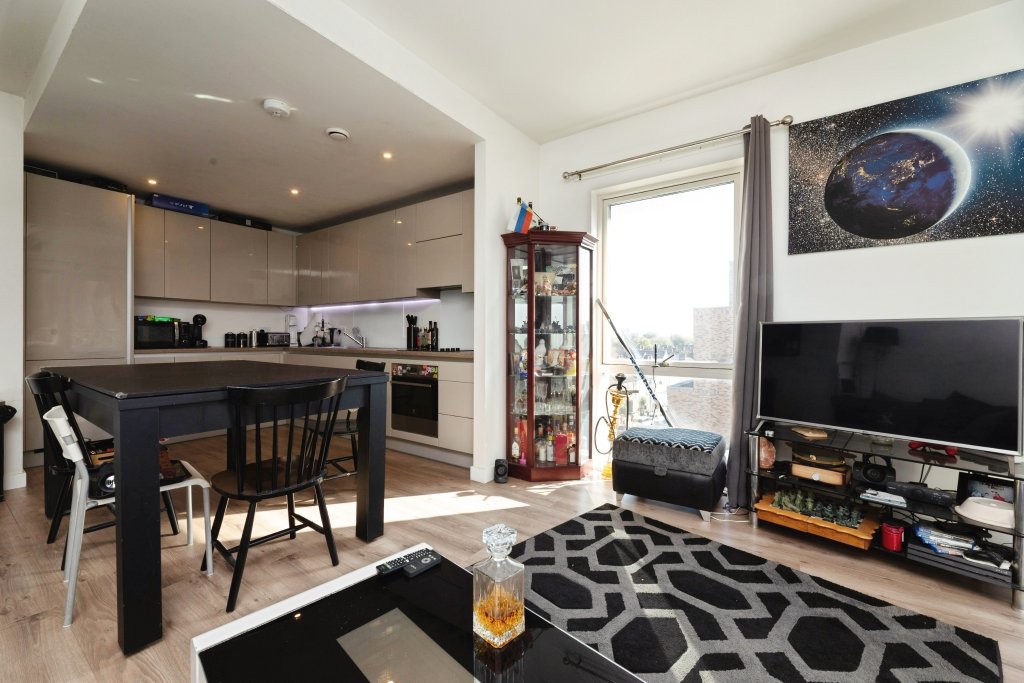 A beautifully presented two-bedroom apartment with a private balcony, offering spacious open-plan living and a modern finish throughout, ideally located in a popular contemporary development in Barking Riverside. This stylish flat extends to approximately 888 sq. ft. (82.5 sq. m.) and has been designed to maximise natural light and space. The property features a generous open-plan kitchen, living and dining area, perfect for entertaining or relaxing, with large windows and direct access to a private balcony. The modern fitted kitchen includes sleek cabinetry, integrated appliances, and ample worktop space. There are two well-proportioned double bedrooms, including a large main bedroom, both offering bright interiors and space for wardrobes. A contemporary bathroom with high-quality fittings and a full-size bath completes the accommodation. The apartment also benefits from a welcoming entrance hall with built-in storage, double glazing, and efficient heating. Lariat Court forms part of a well-maintained, secure development with lift access, landscaped communal areas, and residents’ amenities. The location offers convenient access to Barking Riverside Overground Station, Barking Station, and excellent bus routes, providing easy links to the City and Canary Wharf. Local shops, schools, and green open spaces are all close by. This attractive property would make an ideal home for professionals, couples, or investors looking for a stylish and well-connected apartment in East London.
