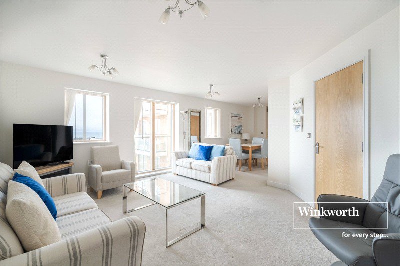 This light and airy, two double bedroom, two bathroom apartment is immaculately presented throughout. The open plan lounge / kitchen / dining room enjoys sea views with a balcony and is flooded with natural light. The kitchen area is well equipped with a range of modern cabinets, integrated appliances with counter tops and flooring to complement.