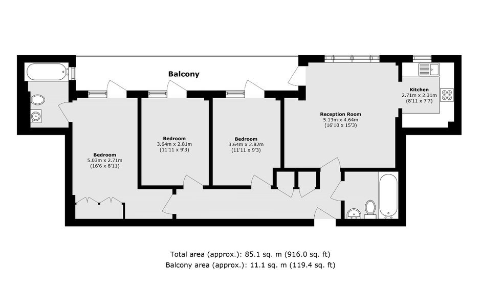 The large reception/diner with semi-open plan kitchen annexed to the rear, offers integrated appliances, including dishwasher and washing machine. There is also a private west-facing balcony directly accessed via the living area.