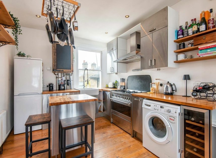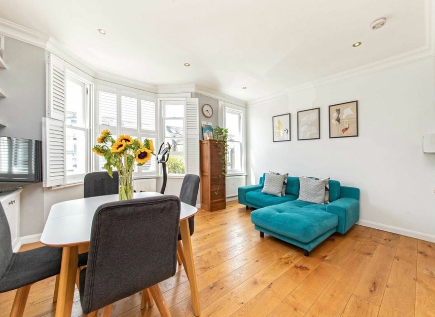 A spacious two double bedroom first floor flat arranged over two floors of a Victorian conversion flooded with natural light, with a balcony to the rear. The property benefits from having a large west facing reception room and semi separate fully integrated kitchen, two bathrooms, and is available chain-free.