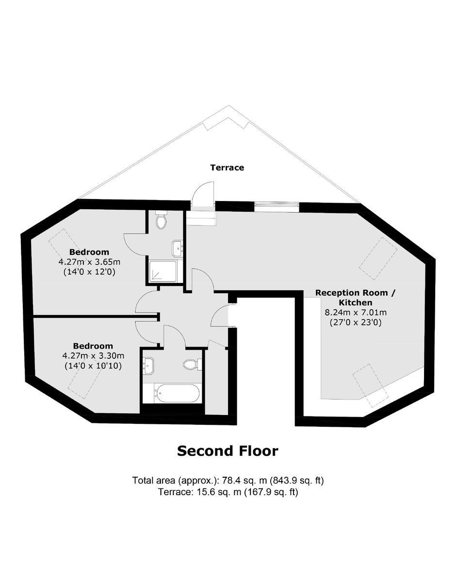 Apartment 5 is the stunning penthouse home, occupying the entire top floor at Park Place, which is a gorgeous two bedroom double bedroom, two bathroom apartment, with a beautiful private roof terrace. The property comprises a sizeable, L-shaped open plan living/dining/kitchen area, principle bedroom with en-suite shower room, a second double bedroom and a three piece family bathroom. Completing this penthouse apartment is an elegant roof terrace, creating a perfect oasis, ideal for al fresco dining.