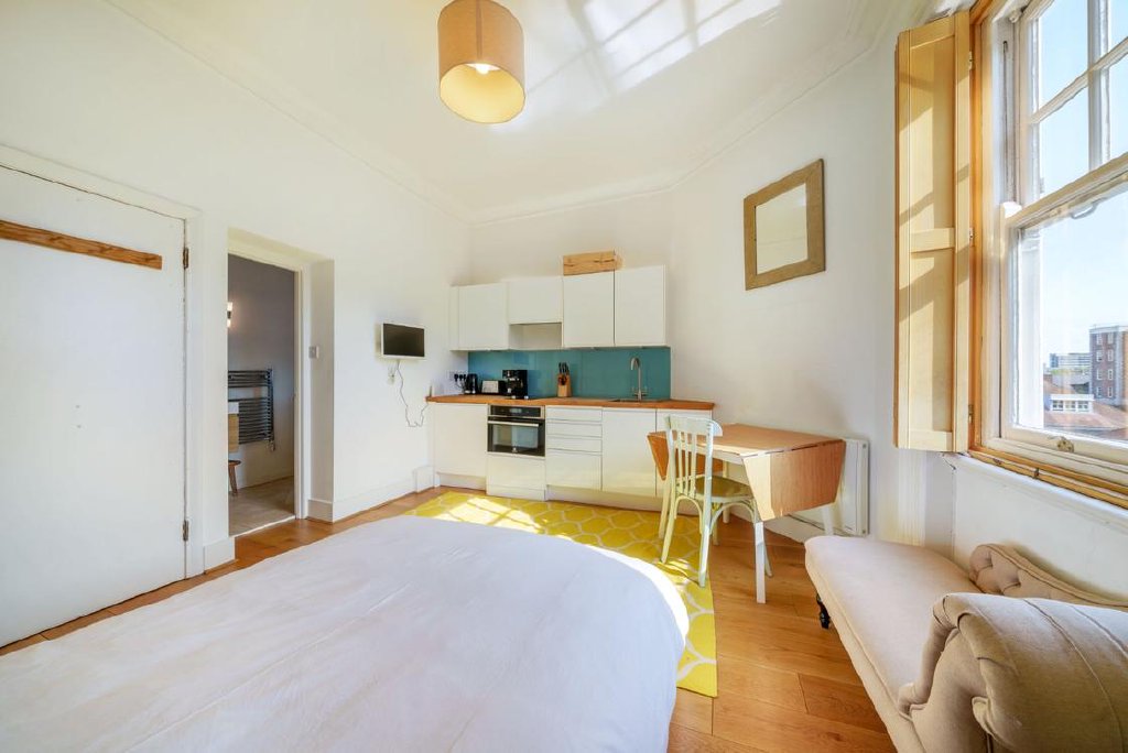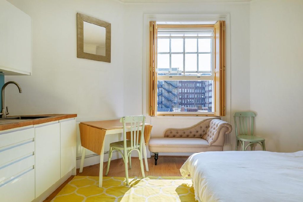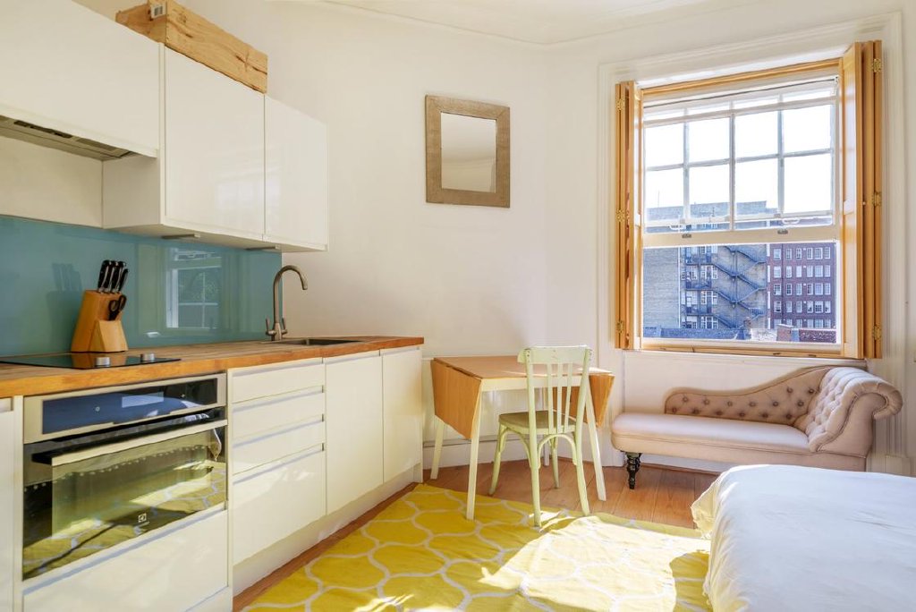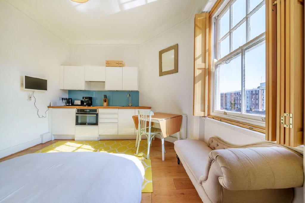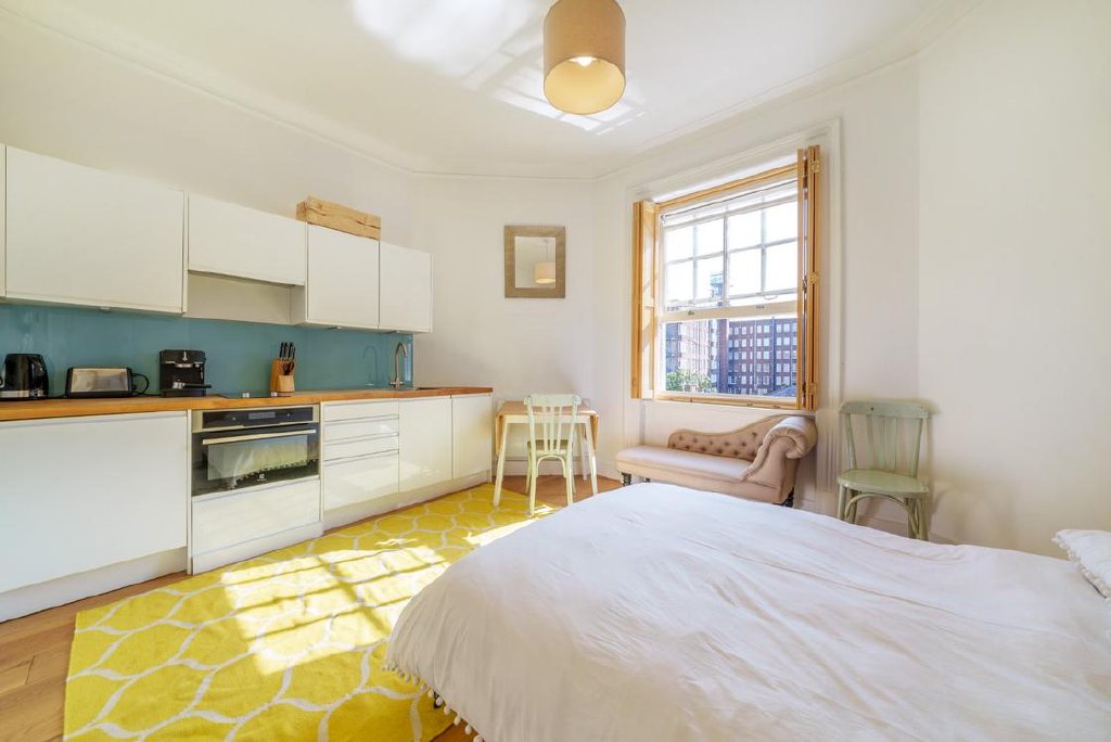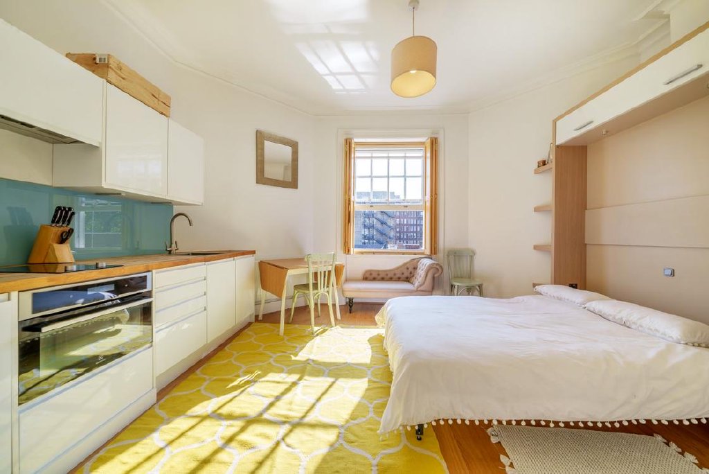 A beautifully presented studio apartment featuring wooden floors, fully fitted kitchen, murphy bed, modern bathroom on the door step of Hyde Park and Kensington Gardens