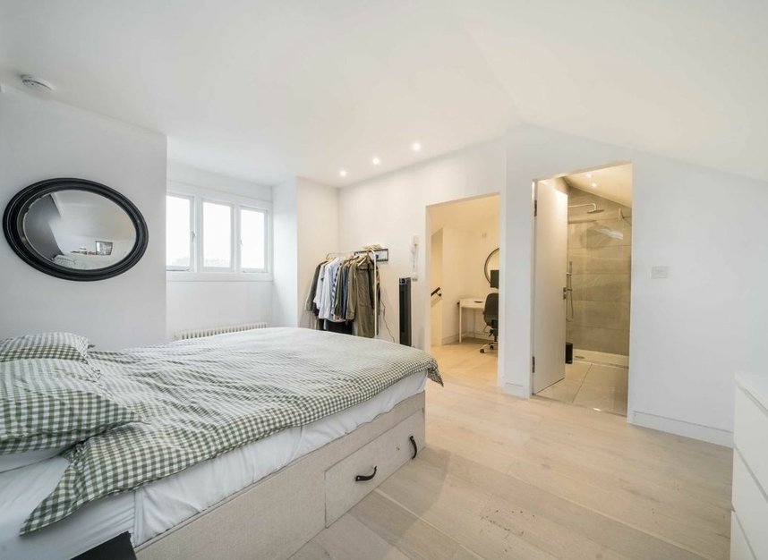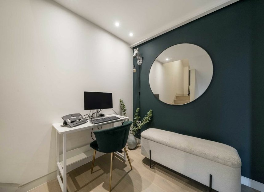 A two double bedroom split level Victorian conversion measuring over 1,000 sq ft in the heart of Hackney. Set across the top two floors, the property has been completely refurbished throughout with a sleek open plan kitchen & island, engineered wood flooring, two modern bathrooms and double glazed sash windows. Additionally there are two useful office spaces on each landing. It is being sold chain free and with a Share of the Freehold.
