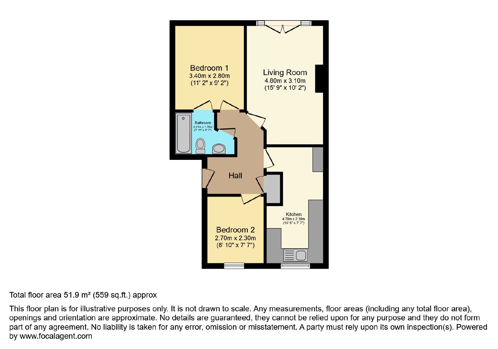 - Two bedrooms