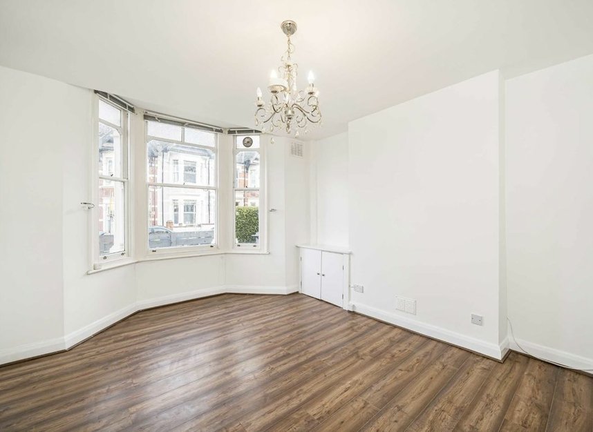 Set within a Victorian conversion is this light and spacious two double bedroom ground floor flat with a west facing garden. The property benefits from having separate eat-in kitchen, a family bathroom and en suite, high ceilings throughout, and is available chain-free.