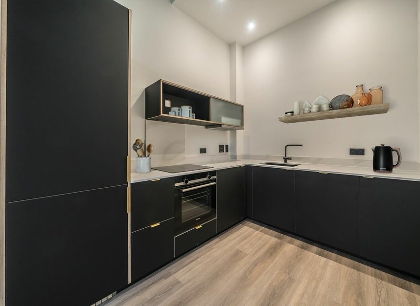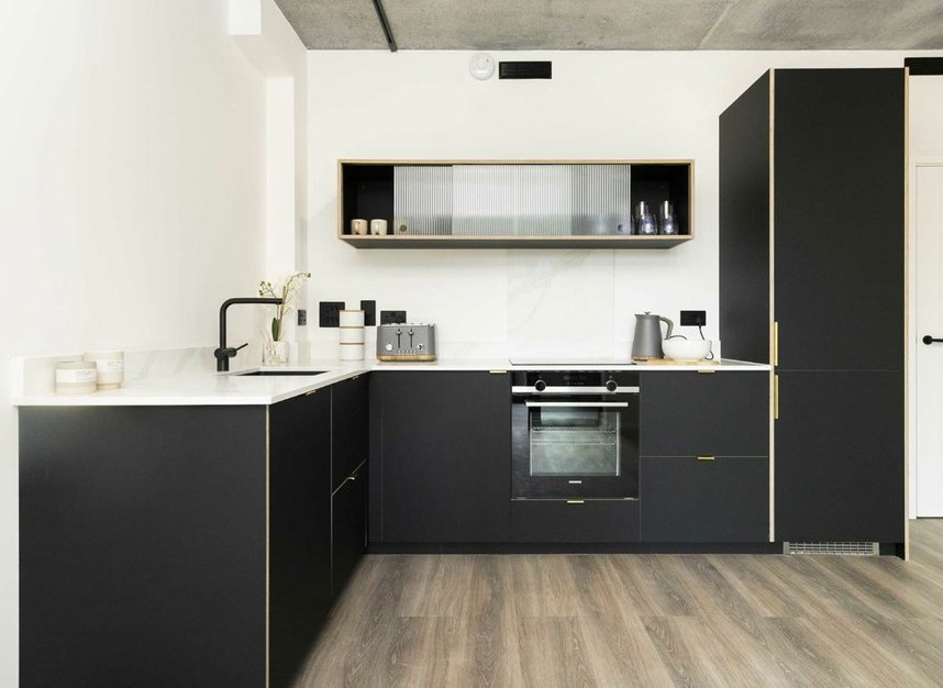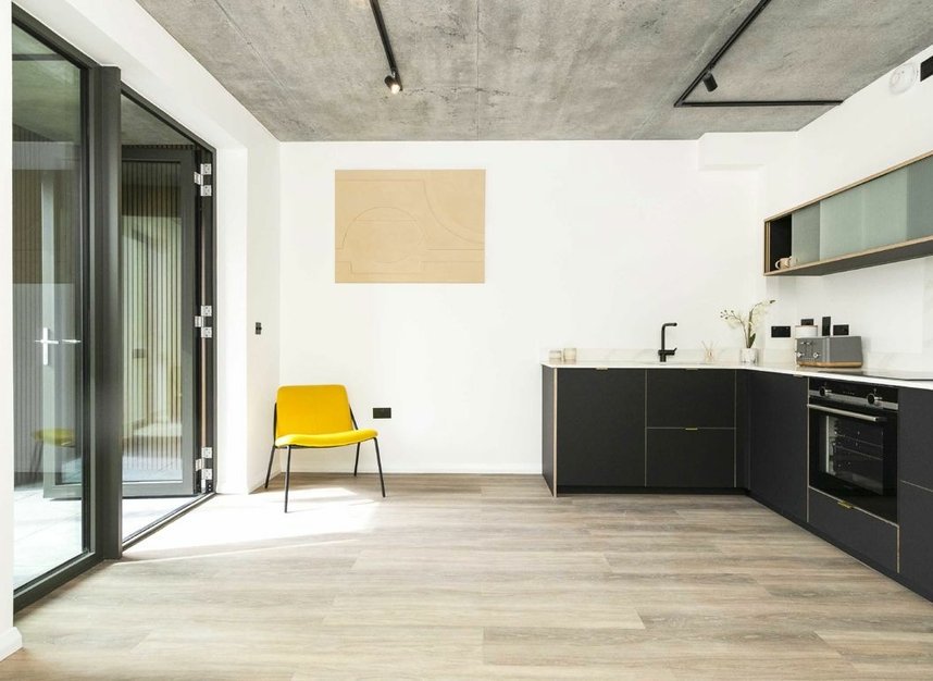 Minutes from Maryland station, The Hudson apartments have been carefully crafted to provide a luxurious retreat from city life. With views of the new Stratford skyline and the extensive Olympic Park. Features a landscaped roof garden, created in partnership Hackney Herbal and Permablitz London. Each apartment enjoys a stylish, clean aesthetic, with handmade Scandinavian kitchens.