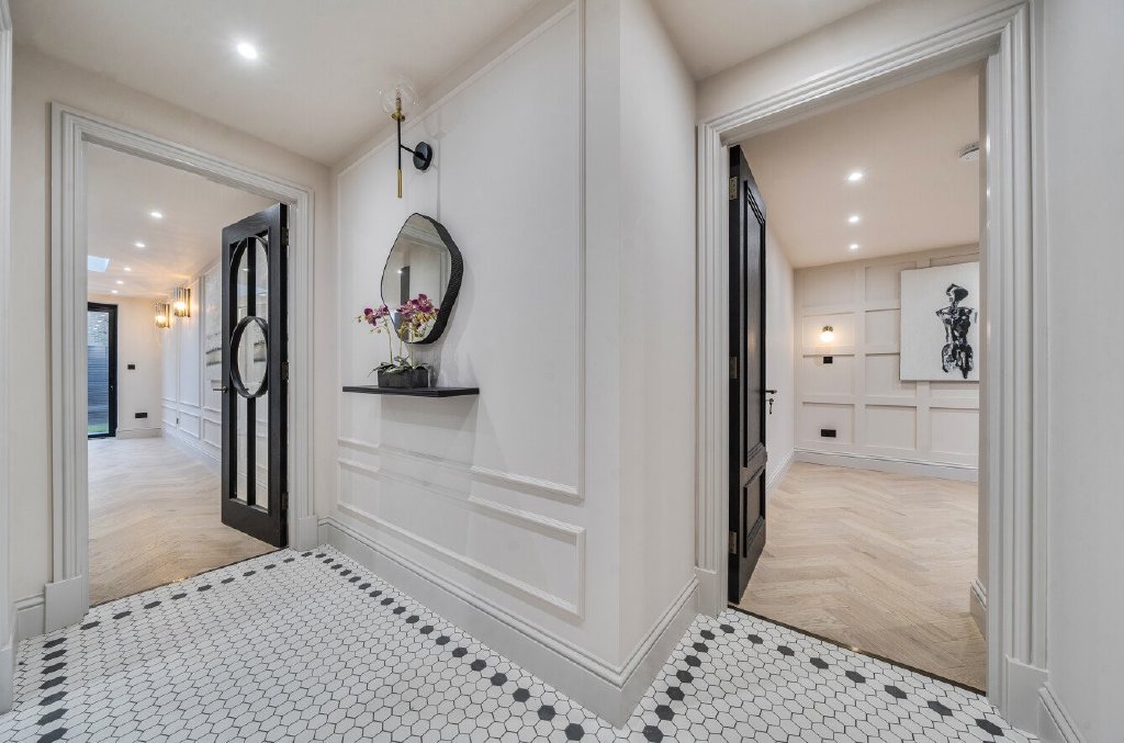 The principal bedroom boasts fitted wardrobes, elegant panelled walls, and a stylish en-suite bathroom, while the second bedroom offers versatility as a guest room or home office.