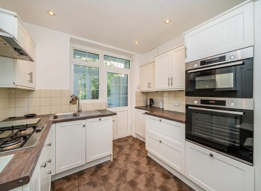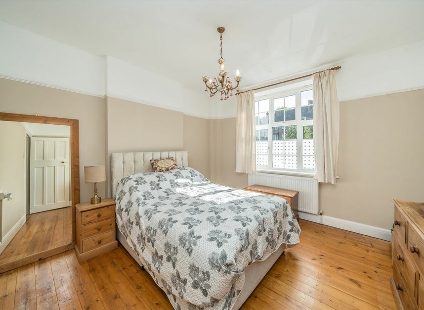 This well-proportioned flat offers a generously sized master bedroom, second double bedroom with built in storage, family bathroom and a bright reception room. The separate kitchen with utility space leads beautifully out through double doors to the mature shared gardens.