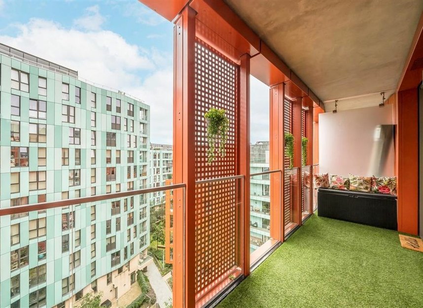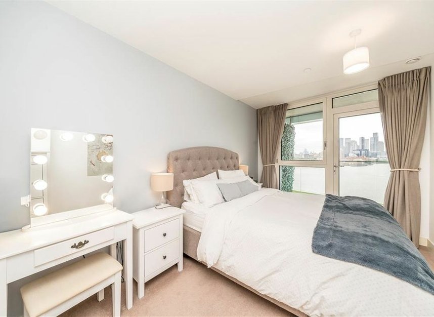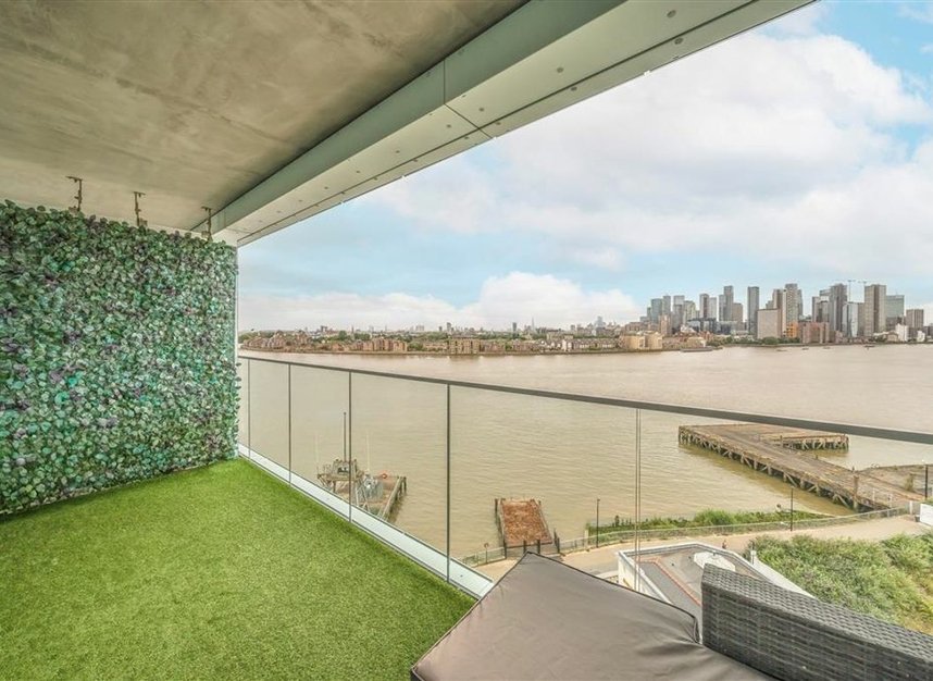 A stunning two double bedroom apartment located within a secure development. Features spectacular direct river views and benefits from open plan living with hardwood flooring. The property further offers a fully fitted kitchen with integrated appliances, two private balconies and two bathrooms one being a large en-suite.