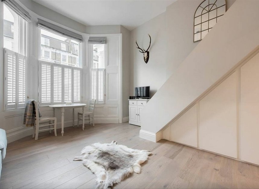 A beautiful one bedroom apartment in the heart of Brook Green. This property has a lovely living space with bay window and high ceilings, mezzanine bedroom, modern bathroom and storage cupboard. This would make the ideal home for a first time buyer or a buy to let investment.