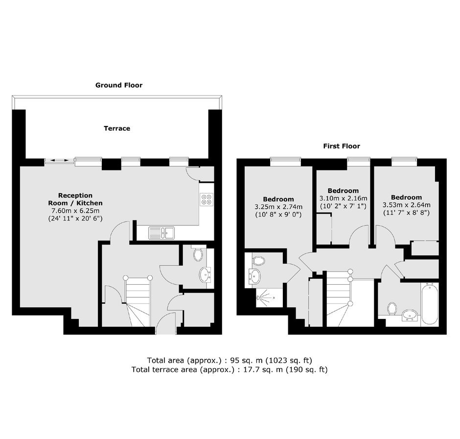 Offering a huge private terrace, this three double bedroom split level flat is in stunning condition and boats a large open plan kitchen living space, two bathrooms, guest WC, ample storage and gym and concierge facilities.
