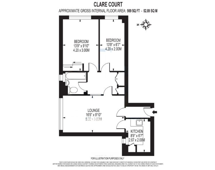 Boasting a good size lounge with large windows allowing lot of natural light coming through, a separate kitchen with integrated appliances, two double bedrooms, a corridor with ample storage and full bathroom. The apartment is located on the fourth of the building with lift access and benefits from a concierge service.