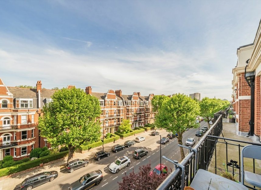 A third floor flat set in one of Maida Vale's most iconic red-brick mansion blocks. The property offers a reception room with access to the terrace, four bedrooms, one of which features an en suite, one other additional bathrooms, and a separate kitchen with a storage room.