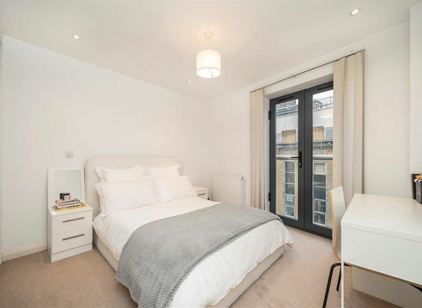 A good sized, two bedroom flat located in Spitalfields. This property offers a large, open plan reception/kitchen featuring sliding doors, which open onto the private balcony, and built in appliances. Both double bedrooms provide plenty of space and built in storage, as well as double doors which open onto a Juliette balconies. The property features modern design and natural light throughout.