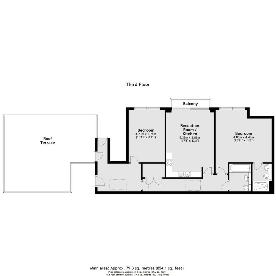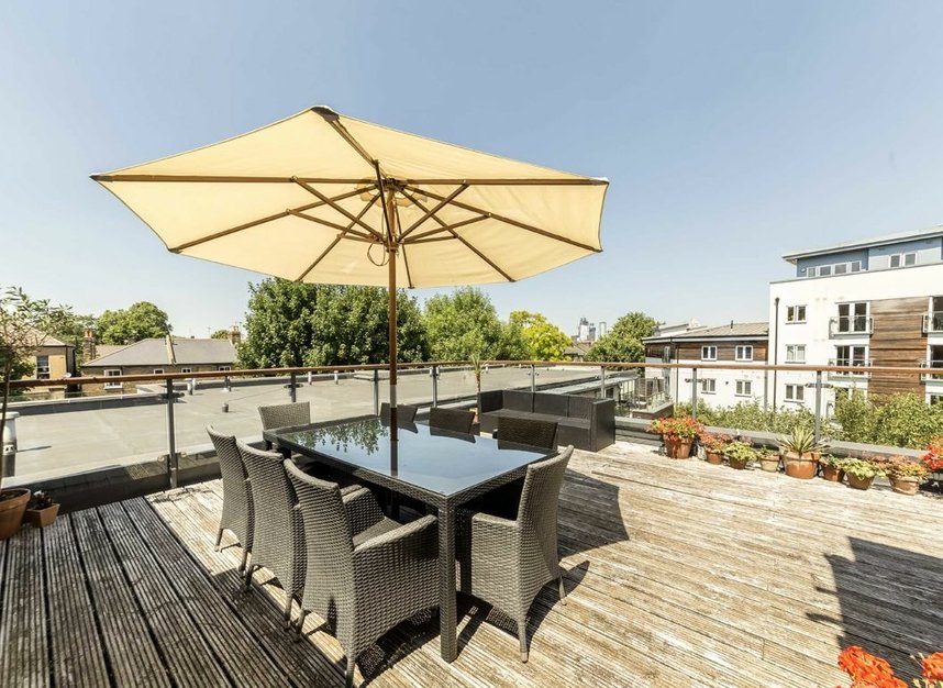 A contemporary penthouse apartment with an oversized roof terrace and direct lift access. Comprising an open plan reception room with a modern kitchen and adjoining breakfast balcony, two double bedrooms and two bathrooms.