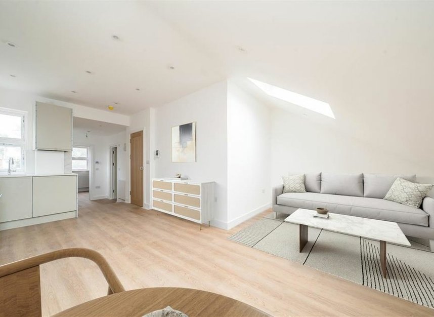 This brand new top floor conversion measures in excess of 420 Sq.Ft. The spacious open plan living area has a well-fitted kitchen with integrated appliances, there is a shower room and a good size double bedroom with storage. The property comes with no onward chain and a share of the freehold.