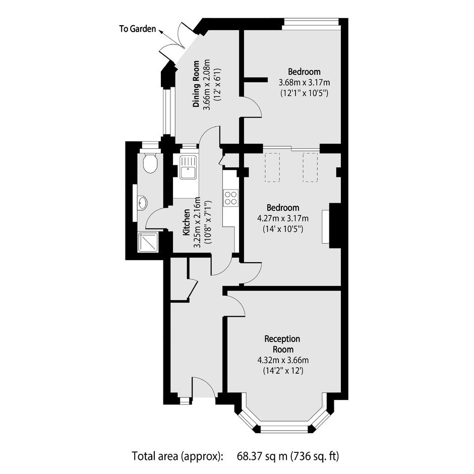 A large two bedroom ground floor flat which accommodates over 700 sq.ft of internal living space. The property benefits from its own rear private garden and is offered with no onward chain.