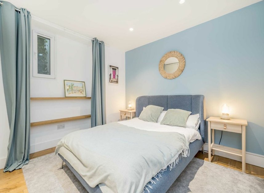 A stylishly refurbished two double bedroom garden flat with its' own front door in a Victorian conversion. With two double bedrooms, two bathrooms (one en suite) and a high specification open plan kitchen and reception room (with room to dine), leading out to the private South facing garden via bi fold doors.