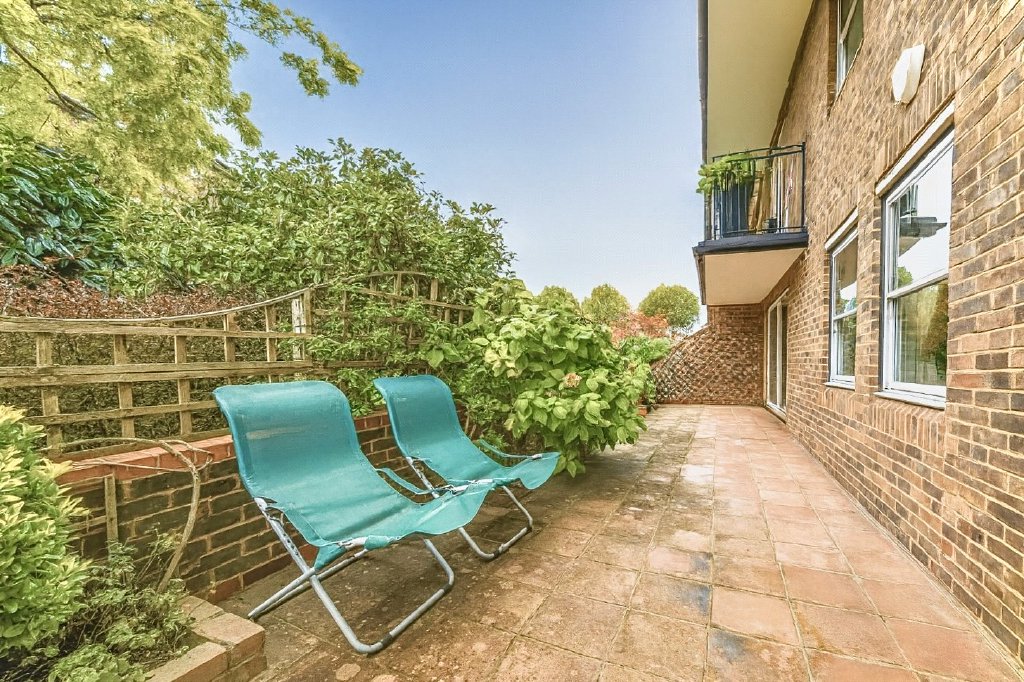 The apartment also features a separate, well-appointed kitchen and a bright reception room that opens via patio doors onto your own private, easily maintained garden. Beyond the patio a gate opens onto beautifully maintained communal lawns and gardens. With this home a private garage in also included as well as residents parking.