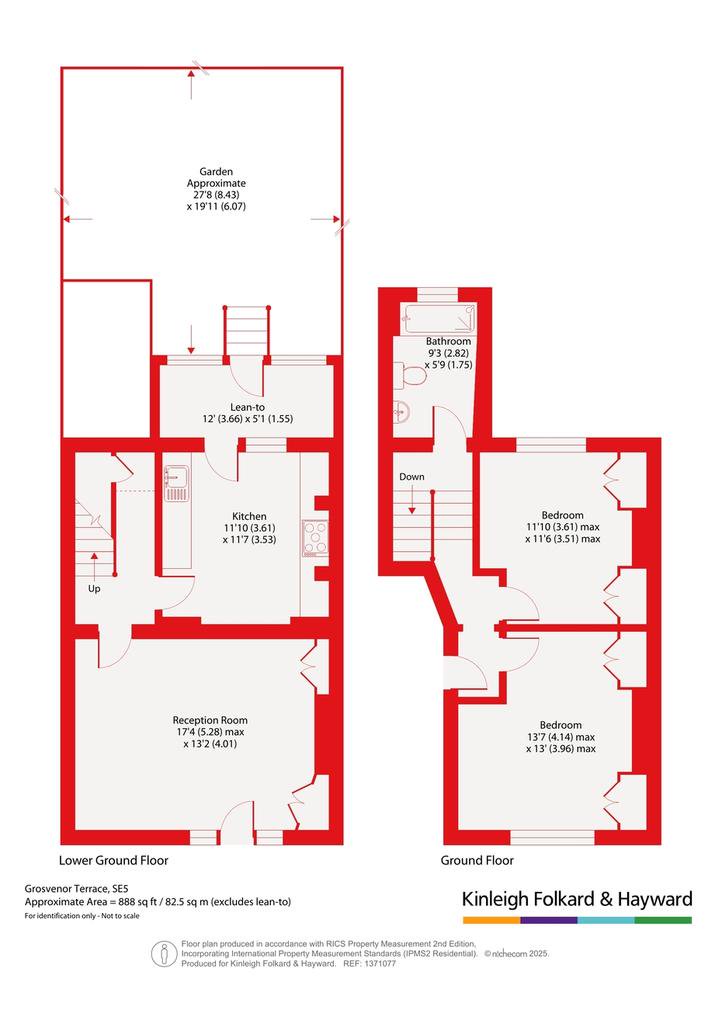 - 888 sq ft / 82.5 sq m (excludes lean to)
