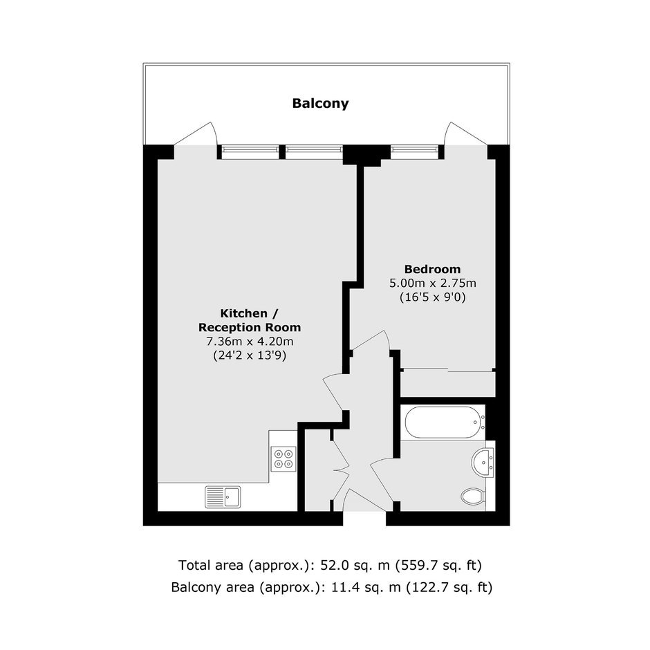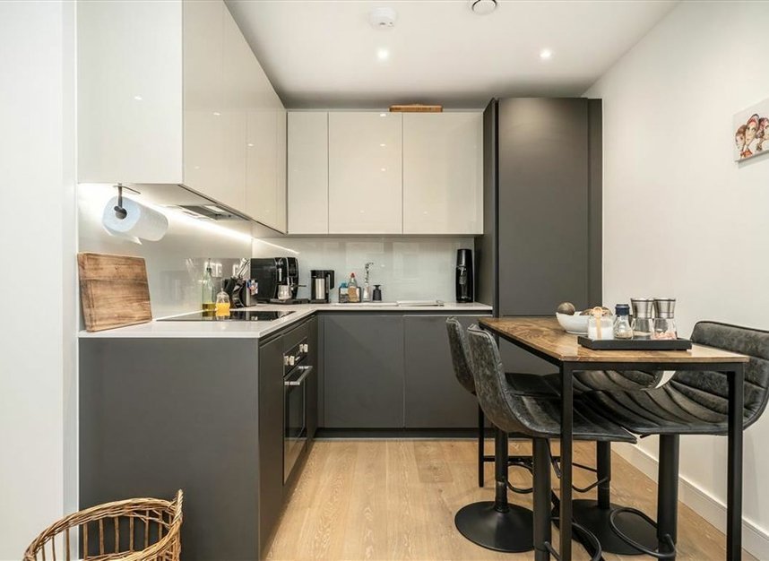 Positioned between Bethnal Green and Brick Lane, this stylish one-bedroom flat offers contemporary living in one of London's most vibrant neighbourhoods. The apartment features a spacious living area and open-plan kitchen with high-quality integrated appliances, opening onto a private balcony, ideal for relaxing or entertaining. The double bedroom offers generous built-in storage and its own balcony access, while large windows fill the space with natural light throughout the day. Spacious bathroom completes the property, designed with modern fittings and sleek finish.