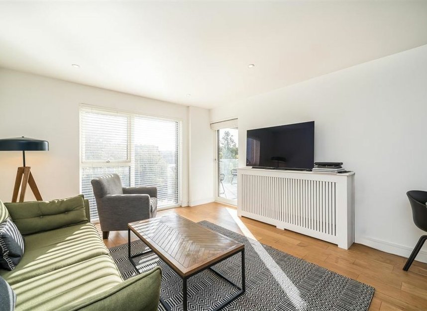 This attractive third-floor modern apartment is presented in excellent order throughout and expertly blends comfortable living with impressive entertaining spaces. Comprising a large open plan reception room with a well-equipped kitchen and an adjoining terrace, a principal bedroom with an en suite shower room and fitted wardrobes, a further double bedroom and a family bathroom.