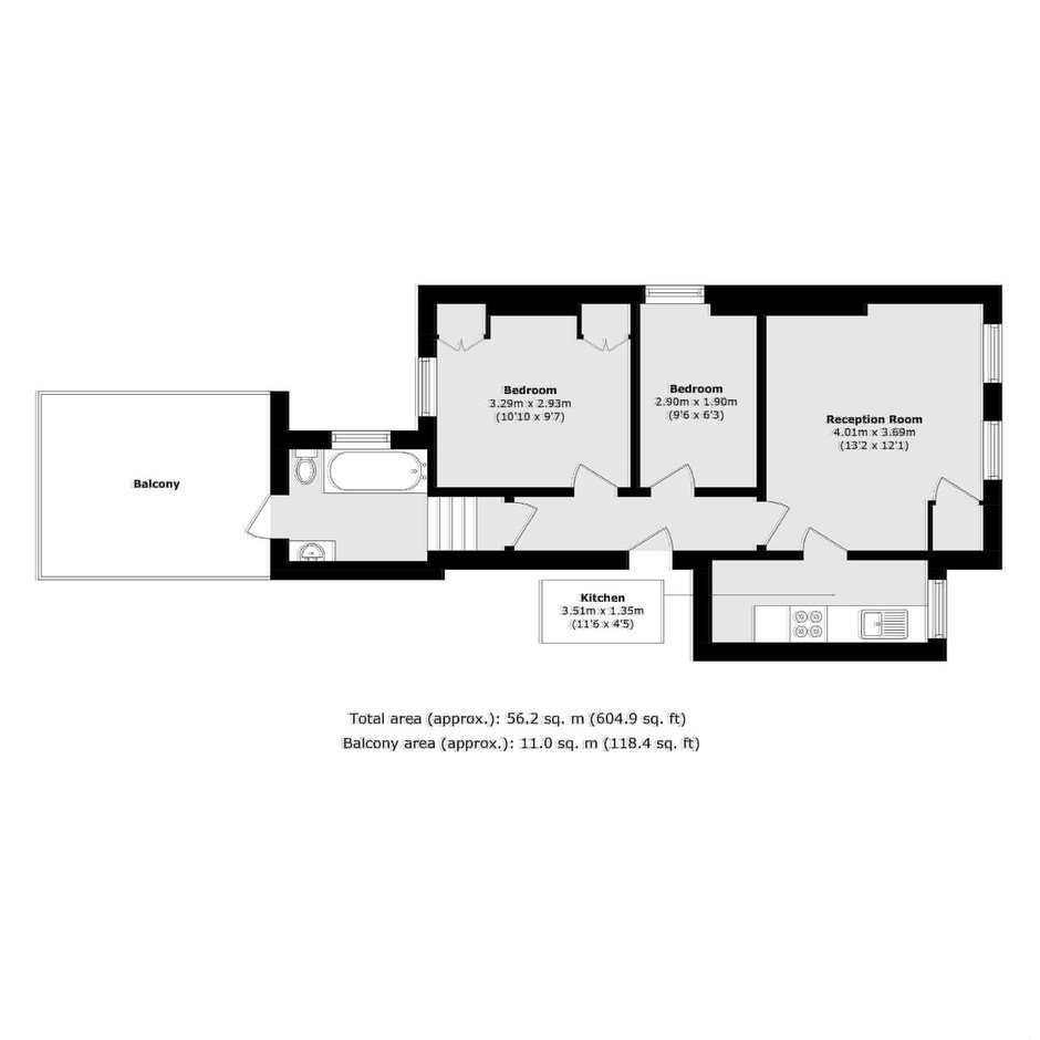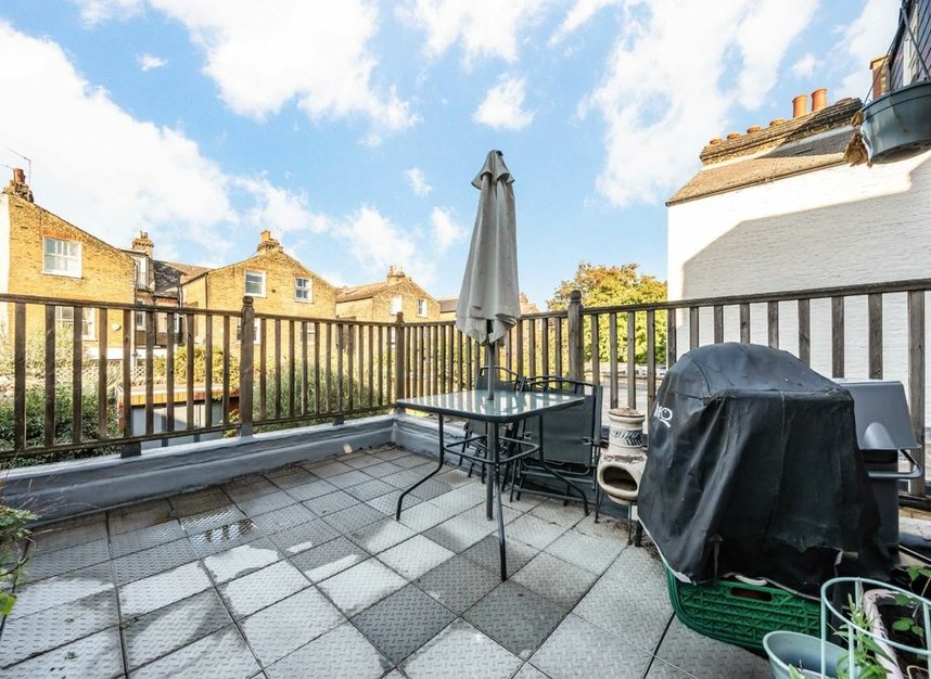A spacious first floor period conversion measuring over 600 sq ft. Arranged to include a reception, separate kitchen, two bedrooms, family bathroom and a large west facing roof terrace. The property also benefits from being sold chain free.