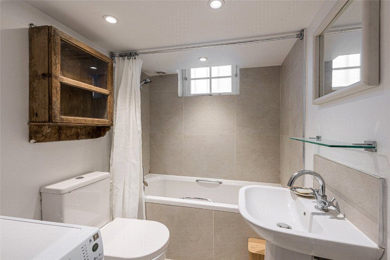 Entered via its own front door through the patio area the flat offers a large, dual aspect reception room with smart, modern kitchen at one end. On the other side of the entrance hall is the first bedroom which is large and bright with good built-in storage. The second bedroom is upstairs and offers great ceiling height and more built-in storage. The landing between the floors is large and super bright with a window that looks out to the mews behind.