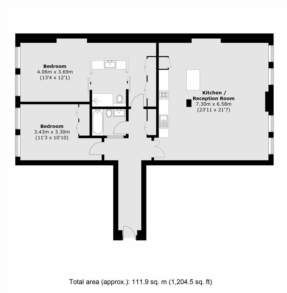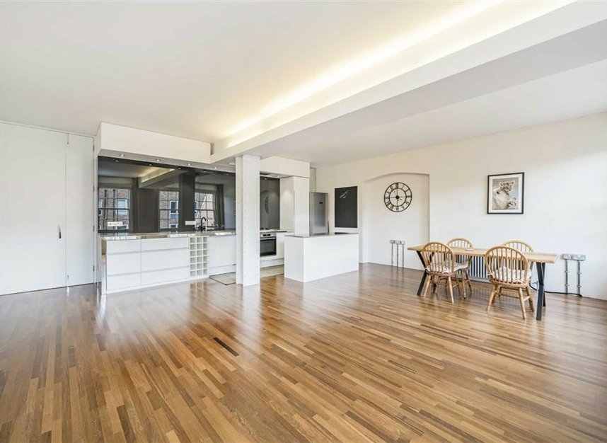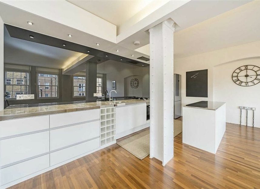 An immaculate Warehouse Conversion, spread over in excess of 1,200 sq ft, with exposed brick, large sash windows & high ceilings, a spacious open plan kitchen & living room, two double bedrooms & two bathrooms, sold with a Share of Freehold. This is a chain free sale.