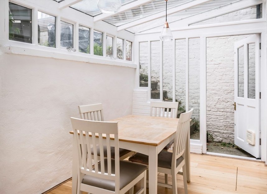 The accommodation includes a spacious reception room highlighted by an original ornate fireplace, a sleek and modern galley kitchen and a second reception area; offered by a bright conservatory that flows effortlessly to a raised private patio.