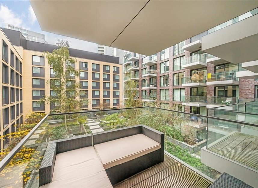 A modern two bedroom, two bathroom apartment in this Central location with two balconies. The property has a large open plan living room with space to dine and a kitchen with fully integrated appliances. This area leads to the properties first private balcony with courtyard views. The apartment has two large double bedrooms with ample built in storage, the principle of which has its own separate balcony and an en-suite. The apartment has floor to ceiling windows throughout allowing for a generous amount of natural light.
