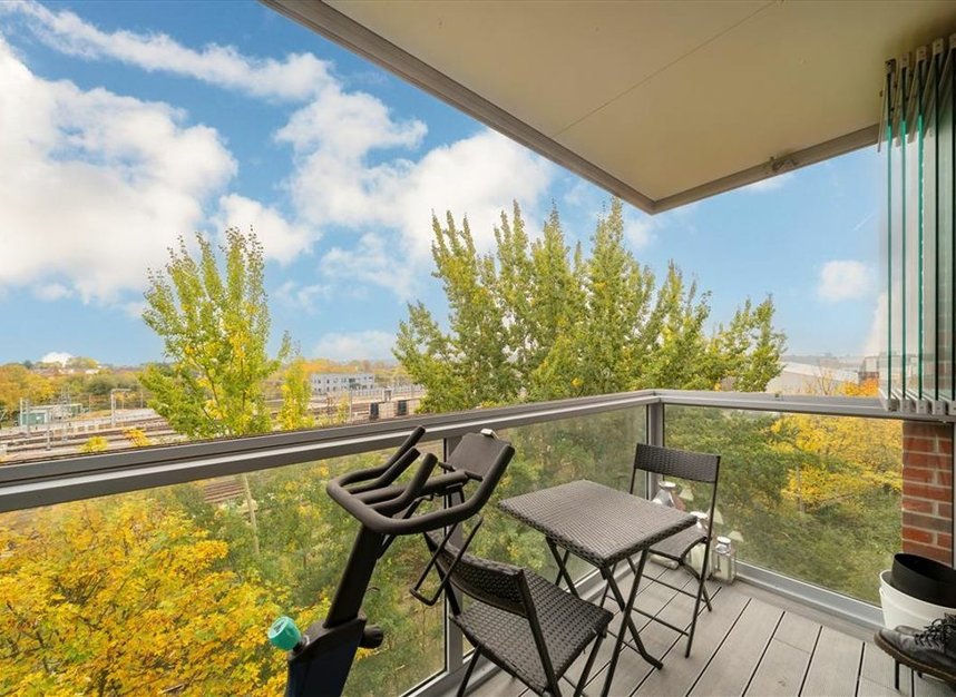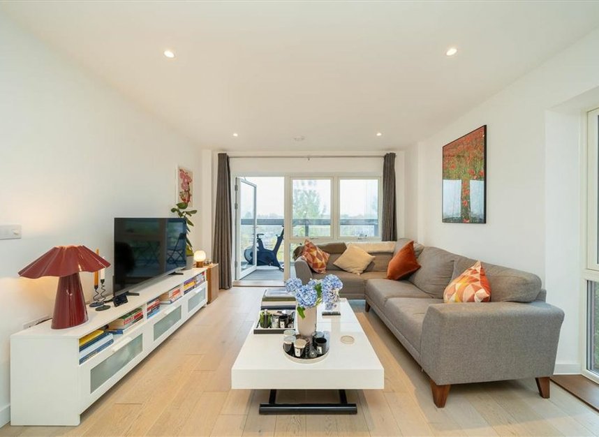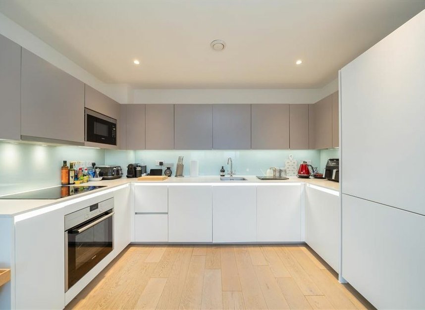 Located within a modern development, this flat offers over 750sqft of living space with two double bedrooms, two bathrooms (one of which is an en suite) and a winter garden accessed via the open plan living room kitchen. The development also has a residential gym.