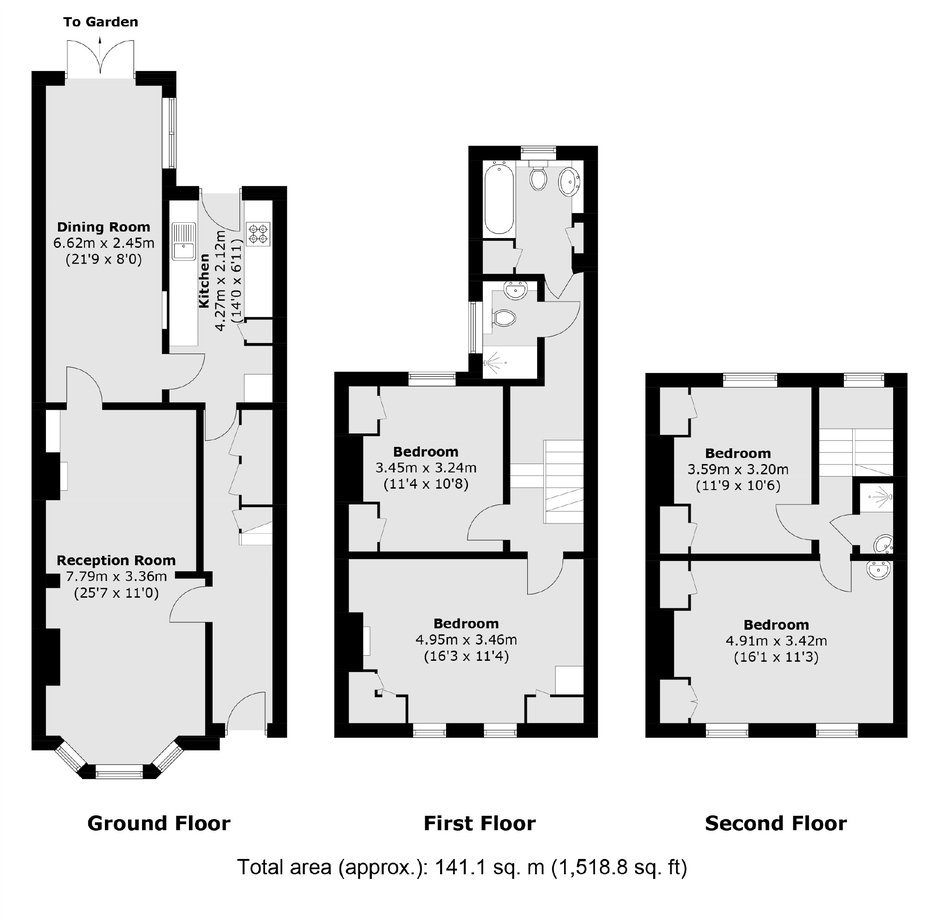 This well-proportioned mid-terrace house offers generous living space arranged over three floors.