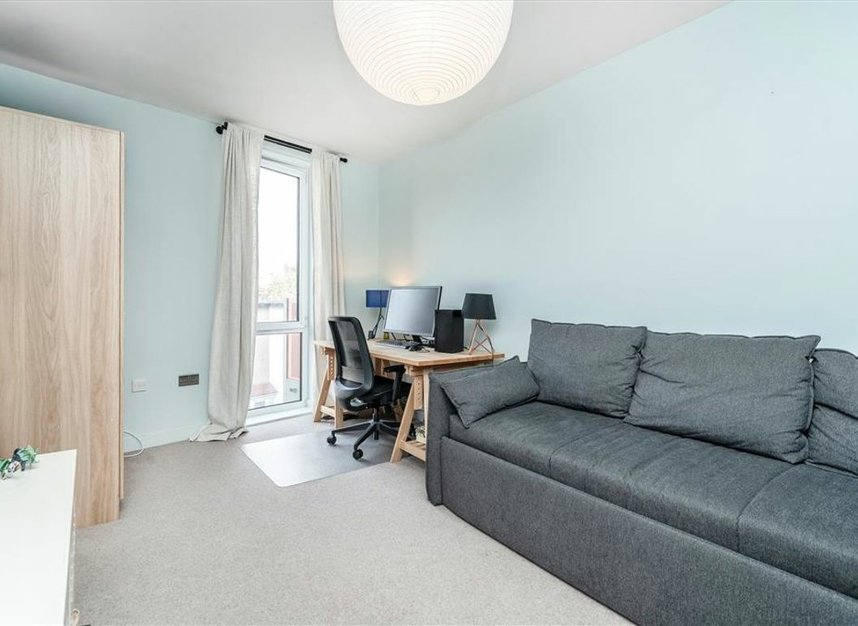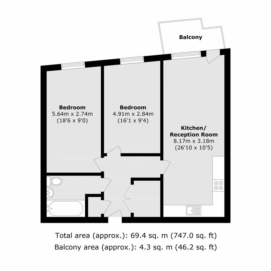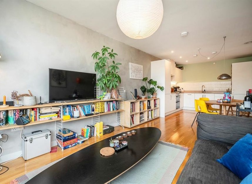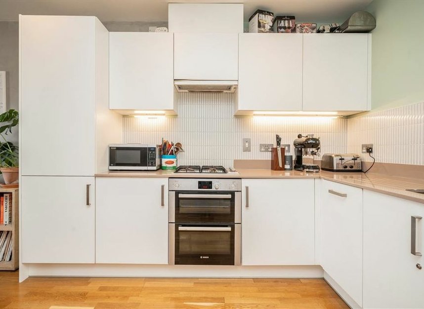 Two bedroom, one bathroom apartment set within a sought after modern development. The property has a spacious open plan living room with a fully integrated kitchen, this area has ample space to dine and leads out to the properties balcony which has good views and allows for plenty of natural light. The apartment has two double bedrooms with in-built storage, a family bathroom kept in modern condition and more storage can be found in the hallway.