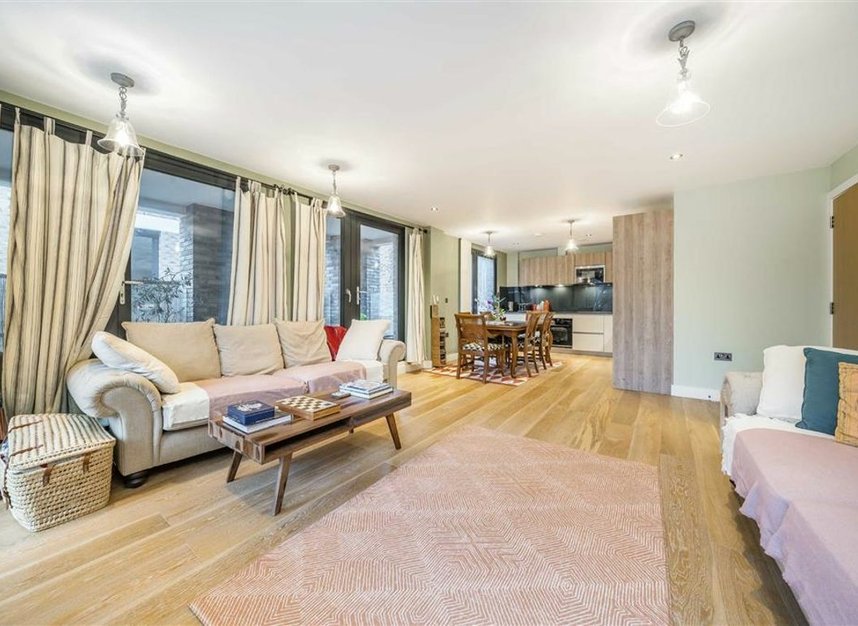 An incredibly spacious and high spec, lateral apartment in a boutique low-rise development with three spacious double bedrooms, three bathrooms, a very generous open plan living room and kitchen, plus a large private balcony.